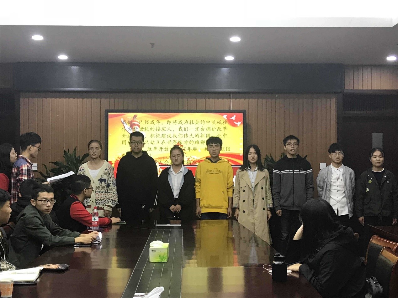 本网讯(18应用化学1班 曹玉昆)岁月峥嵘,伴我成长。为了让同学们更深地了解改革开放40年来翻天覆地的巨变和自己身上所肩负的历史重任,2018级应用化学1班于2018年10月21日下午6点45分在礼勤楼702室举办了“我与改革共成长”活动。参加此次活动为2018级应用化学1班全体同学。本次活动由应用化学1班副班长董文秀和团小组组长茆陈程主持。