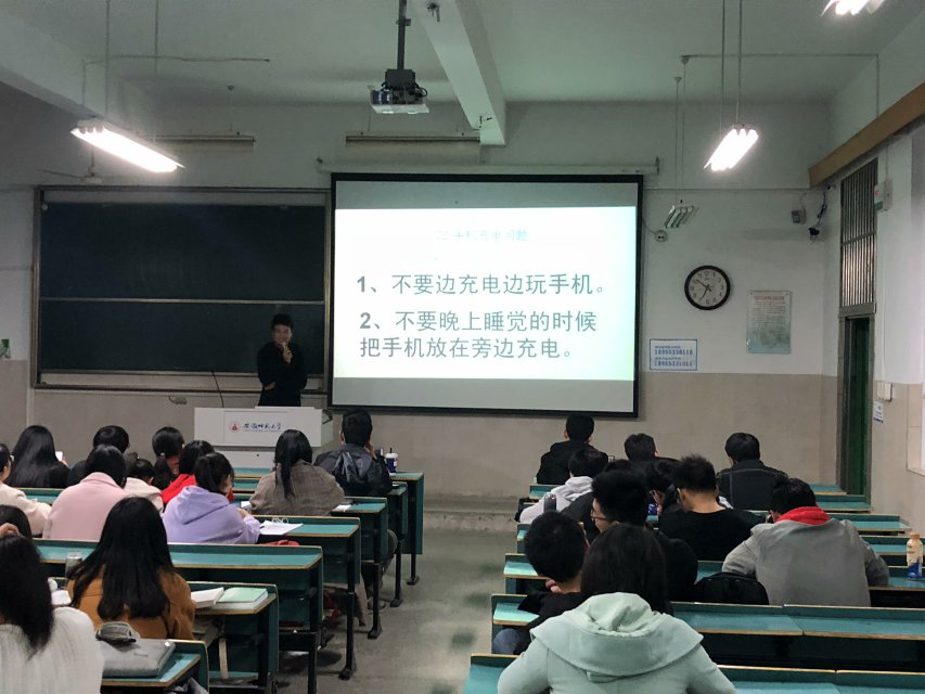 本网讯(2018级材料化学 朱莹珊)寝室用电人人有责,安全环境你我共创。2018年12月2日晚6点半,2018级材料化学2班在行知楼2030403教室召开了冬季寝室安全教育主题班会,参加教育班会的有18级材料化学二班全体同学,本次班会由安全委员武凯主持并进行PPT展示,旨在加强班级同学用电安全防范意识,保障同学安全。 会上,安全委员武凯围绕三个方面认真分析用电问题。首先,他提出插排线凌乱打结问题,并结合案例提出解决方案。班会重点强调了手机充电问题。他指出了边玩手机边充电的弊端,让同学在平时意想不到之处有了更深的认识。最后,他积极号召同学养成随手断电的习惯,总结寝室用电的倡议,鼓励同学安全用电。整场班会运用了大量的图片和真实的案例让每一位到场的同学更深切地体会到寝室安全用电的重要性。 安全是凝固的血,沉淀的泪,长鸣的钟,无字的碑。事实证明,我们只有认真学习并贯彻落实“安全第一,预防为主,综合治理”的方针,做到防患于未然,善于学习,养成良好习惯,才能构建美好校园。从我出发,共同守护。