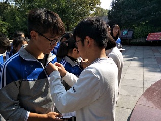 活动开始,在王稼祥铜像前,大家重温了入团誓词,并由林志洋、邓传玉两位党员同志为大家颁发了团员证、佩戴团徽。接着,班委带领大家在纪念馆里共同学习了团章。