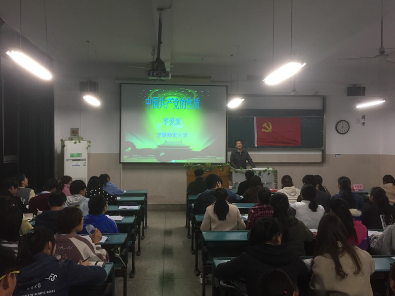 本网讯(党课班 王思源)11月17日晚,色情视频 第23期入党积极分子培训班开班典礼在行知楼如期举行,校党委组织部部长季爱新,院党委书记、分党校校长汪俊武,色情视频 教授吴华强,党课班班主任老师王国良、副班主任王雨兵出席本次开班典礼,典礼由王国良老师主持。 开班典礼在庄重雄伟的国歌声中开始,首先由王雨兵老师宣读培训班班委任命及班级管理制度,之后指导老师吴华强汇报了本学期党校工作安排,接着22期优秀学员邓传玉发言,强调了作为入党积极分子的身份意识,要坚定信念,加强理论学习的同时联系实际,做同学们的表率,在同学之中起到模范带头作用。随后23期学员代表郝艾婷做了关于党课学习的发言,她代表全体学员表明态度,要主动学习,自主学习,严守纪律,加强自我约束,时时刻刻以党员的标准要求自己。最后汪俊武老师讲话,塔肯定了学员的热情,对所有入党积极分子表达了深切的期望,赢得热烈掌声。 第23期入党积极分子培训班第一讲由校党委组织部部长季爱新老师主讲,季爱新部长从政党概念切入,让学员们先对中国共产党有了大致的认识,随后季部长从党的性质中的两个先锋队,一个领导核心,三个代表以及一个最终目标四个部分分别对党的性质进行细化的讲解,让学员们对党的性质的内涵有了充分,系统的了解,其中对党“顺民意,聚民力,谋民利”理论阐述结合实例具体分析,说明我党发生发展的历史必然性,让学员对党有了更加理性的认识,对党有了属于自己的思考。 本次培训使同学们看清了未来努力的方向,进一步了解了共产党员的责任和义务,让学员的受益匪浅也坚定了同学们积极向党组织靠拢并加入中国共产党的决心。