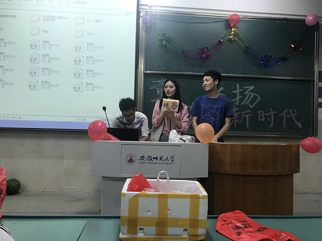 《小王子》里曾言:每一个大人都曾是孩子。在六月一号这个充满着纯真与欢笑的节日,为增强班级凝聚力,加强不同专业学生间交流,17级材料化学一班携手15级空乘的学长学姐在2010401联合举办了“童心飞扬 花开新时代”主题活动。 活动伊始,由班委发放儿童节福利,每位同学都喜笑颜开,仿佛回到七八年前,排排坐,分果果的小学时光。接下来,进行了活动的第一个环节:猜动画片。各组同学重交流,抒己见,于沟通中回顾少时记忆,井然有序地参与活动,并领取了奖品。 下一个环节是声临其境,每一帧画面饱含着儿时的回忆,选手饱含深情为动画片配音,最终胡孟星以8.7的高分胜出,彭文婷和李梦晴以8.4的高分位列其次,每名胜出的选手都赢得了大西瓜一个。随后,15级空乘的学长学姐给同学们带来空乘专业的晚会入场券和一些小礼品,邀请同学们参加。“一木不成林,百花方为春”最后的吃瓜大赛则是体现凝聚力的时刻。每一队半个西瓜,用时最短吃完的一组即为胜出组,泱泱材化,团结自尚,通过这个比赛,小组成员领会到一个团队劲往一处使的道理。活动结束后,班委们打扫完卫生,本次活动圆满结束。 此次活动顾往昔童心,系班级凝聚,在材化一班全体同学的精心准备下完满演绎。在这个新时代,作为大学生,应该不忘初心,保持童心,探索科学的神秘,国家的昌盛,让青春之花永不凋零。