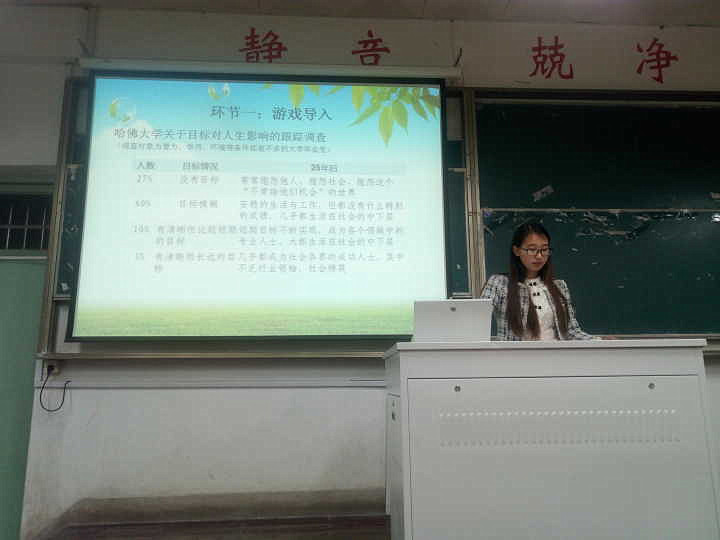 本次班会首先以一个小游戏导入,参与游戏的同学先正对着框投球,发现很容易投进去,然而在蒙眼原地转三圈之后,便很难投球成功。同学们切实感受到:要想成功,必须有一个清晰的方向和明确的目标。哈佛大学关于目标对人生影响的跟踪调查也表明了具有长远而清晰的目标的重要性。