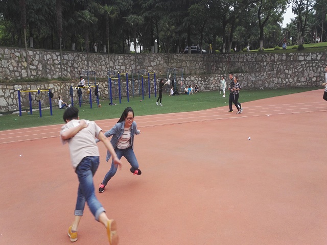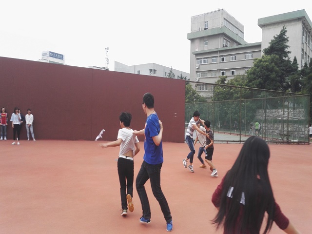 最后,是激动人心的“撕名牌”环节,每个队都想把其他队的“名牌”撕下来,活动刚开始,场面就已经很激烈。辅导员和一些同学刚开始“名牌”就被撕了,有些却为了留到最后,赢得胜利而勇敢奋战,躺在地上防止被“撕”、把人抬起来“撕”,他们用尽全力战斗,玩的不亦乐乎。留在最后的少数人所在的队伍是最后的赢家,最后留下的人数越多、名次越好。“撕名牌”大战结束了,到了颁奖的时刻,冠军队伍每人获得一盒《太阳的后裔》明信片,亚军队伍每人获得笔芯一盒,季军每人获得草稿纸一本。参与活动的每个人都有小礼品拿。颁奖结束后,同学们在操场合影留念,纪念他们飞扬的青春。 本次活动的成功举行,缓解了同学们的学习压力,丰富了同学们的课余生活,拉进了同学之间的距离,让他们彼此更加了解,也增进了同学们之间的感情和凝聚力。奔跑吧,樱花。他们,永远是一个整体,一个大家庭的不同成员。(文:臧晓娜 图:孙波)