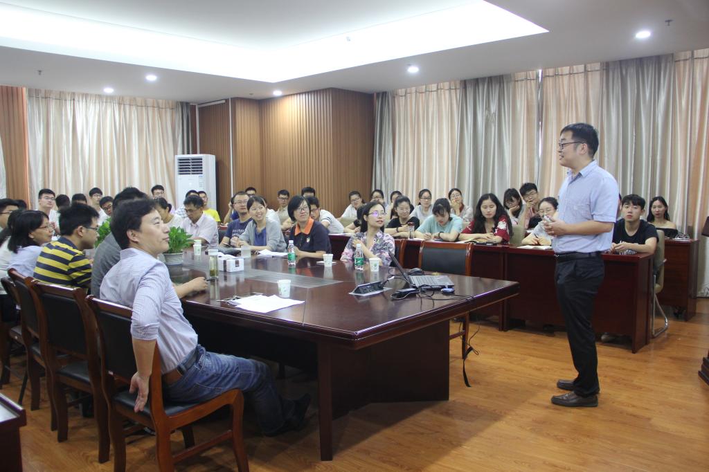 鄢勇博士作了题为“Semiconductors for photocatalysis”的学术报告。鄢博士主要介绍了高效利用太阳能获取太阳能燃料的基本原理和现有方案,然后提出可以通过提高量子效率的方法来突破100%的量子产率的基本限制。随后鄢博士讲述了通过一种多激子产生效应(MEG)的量子点光电极,达到114%的量子产率的太阳能产生氢能源的方法,并且探究了反应的机理,比较了光电催化体系(PEC)与太阳能电池(solar cell)体系的空穴输运的区别,突出了光电催化体系(PEC)的优势。会后,鄢博士积极热情地回答了老师和同学们的疑问,讲座在轻松愉悦的氛围中结束。