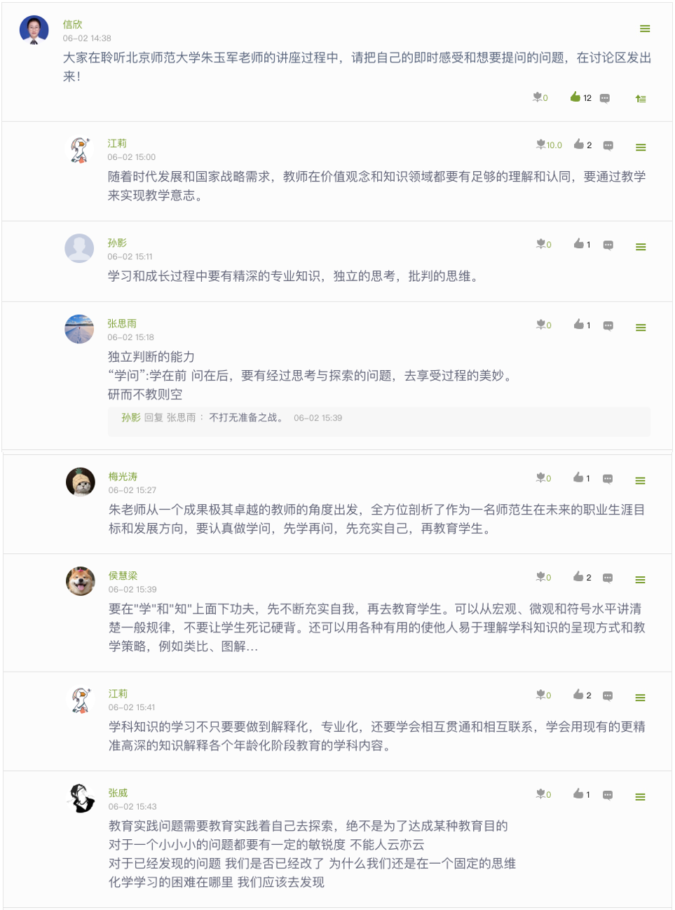 讲座期间,同学们积极地在腾讯会议平台和赭麓学堂上与朱老师展开讨论。正如朱老师说的:教而不研则浅,研而不教则空,学生们纷纷表示这是一节非常接地气又干货满满的讲座。最后朱老师耐心地回答学生的问题,整个讲座高潮迭起,精彩不断。