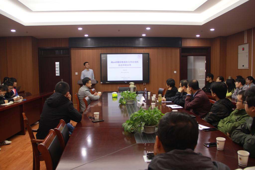 杨金东博士作了题为“iBonD键能数据库及其在有机反应中的应用”的学术报告。杨博士首先简要介绍了清华大学化学系基础分子科学中心(CBMS),主要围绕化学键能开发基础研究。接着介绍了iBonD键能数据库的建设以及键能参数的设置。着重结合实例讲述了iBonD键能的数据运用,数据库具备丰富的结构查询方法,如精确匹配、相似度匹配、通配符查询等,可根据溶剂和pKa范围进行结果筛选,也可根据化合物类别进行筛选和浏览,所有数据均提供文献出处。作为基于国际互联网的数据库,iBonD方便查询并易于使用,数据库中每个来自于文献的键能数据均经过评估和比对,详细列出了数据测定所用的溶剂和方法,便于研究者采用最合理的数据进行自己的工作。杨博士还简述了键能可以考察溶剂化效应,衡量试剂的活性,研究反应的机理以及指导反应的合成。最后杨博士指出发展完整的键能数据库不是一朝一夕,需要不断努力。报告会后杨博士就本次报告内容和与会师生进行了热烈的互动交流。