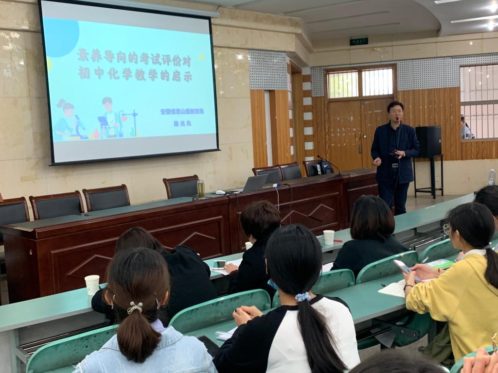邀请安徽省特级教师、安徽省正高级教师、霍山县教研室主任、中学化学教研员陈兆先来院作题为《素养导向的考试评价对初中化学教学的启示》的主题报告,这是2021年“中学化学名师讲坛”系列活动的第四讲,报告会在花津校区财务处二楼报告厅举行。2019、2020级化学专业师范生及部分化学教学论专业研究生和教师参加了此次报告。