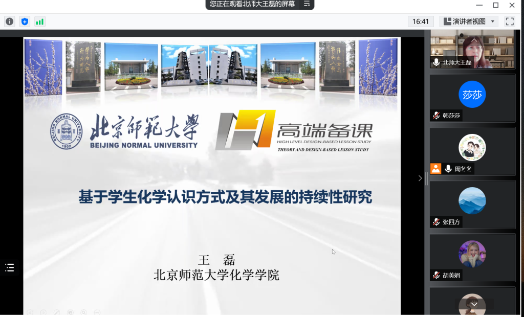 韩莎莎)2022年6月23日下午,北京师范大学王磊教授应邀为化学教育研究生以“关于学生化学认识方式及其发展的持续性研究”为主题作线上专题报告。本次报告通过腾讯会议线上开展,由孙影教授主持,化学教育专业研究生、部分教学论专业教师以及部分化学师范本科生共同参加。