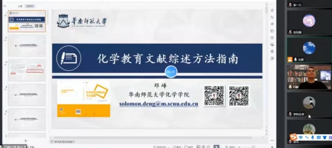 作题为《化学教育文献综述方法指南》线上专题报告,这是2022年“研究生科研专题讲座”第三讲。讲座通过腾讯会议直播,由色情视频