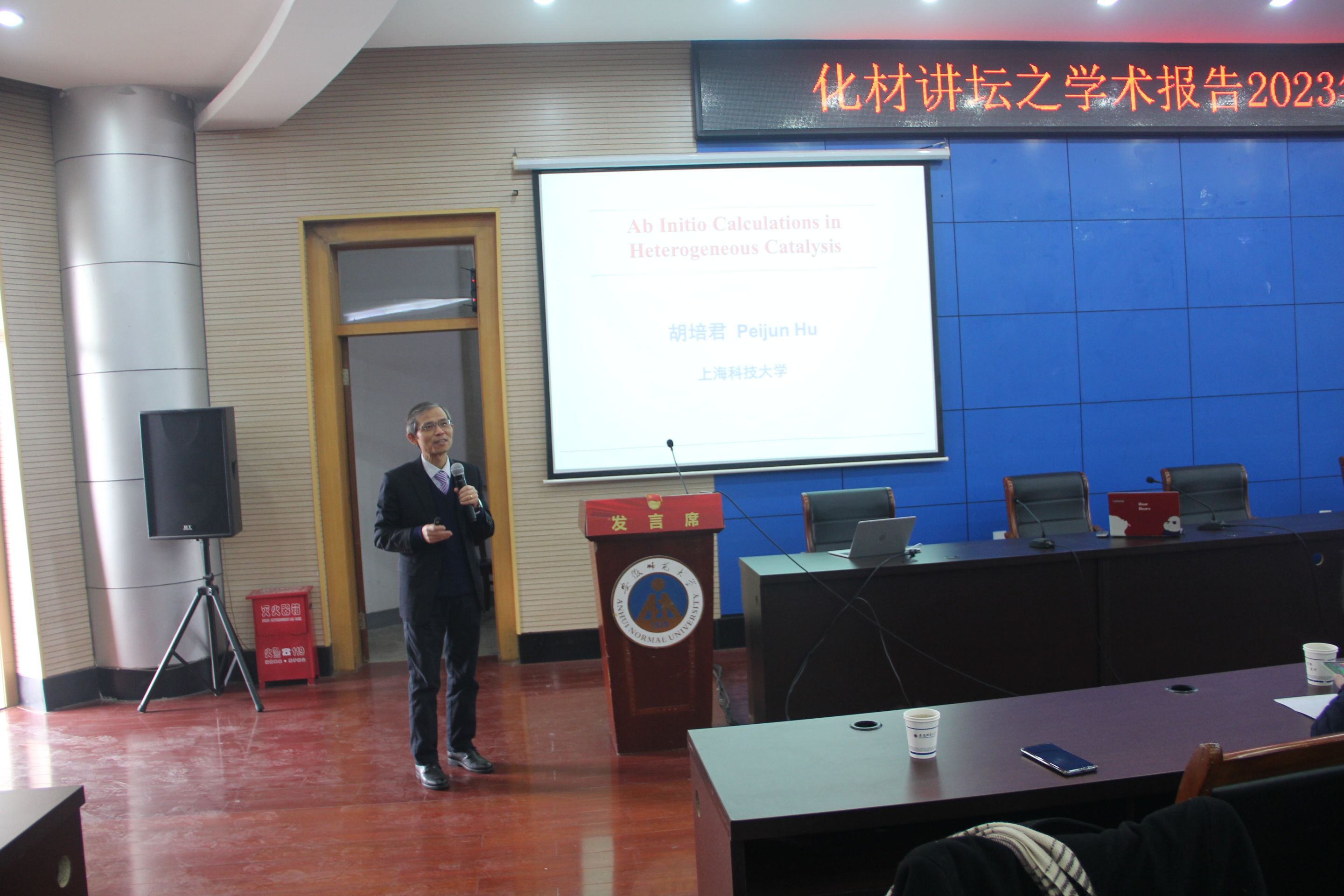 胡培君教授作了题为“Ab IitiCalculations in Herogeneous Catalysis”的学术报告。胡教授首先简要介绍了非均相催化反应过程短暂的历史发展过程,回答了催化反应应该在哪里发生这样一个疑问,解释了价电子与过渡态位置的关系,从而洞悉了催化中的微观途径。随后详细介绍了反应类型,从火山形曲线多相催化的基本发现开始,客观讲解了该反应的物理本源,阐述了反应的两步模型以及反应的化学势动力学理论。再次讲解催化剂的设计,以酰胺加氢制胺为例,详细介绍了催化剂的设计过程,机理以及注意要点。催化模拟中的AI,再过30年,机器人将比现在再聪明一百万倍,我们应该如何面对这种境况。最后胡教授对非均相催化反应进行了总结。会后,胡教授就报告内容回答了与会师生提出的问题。