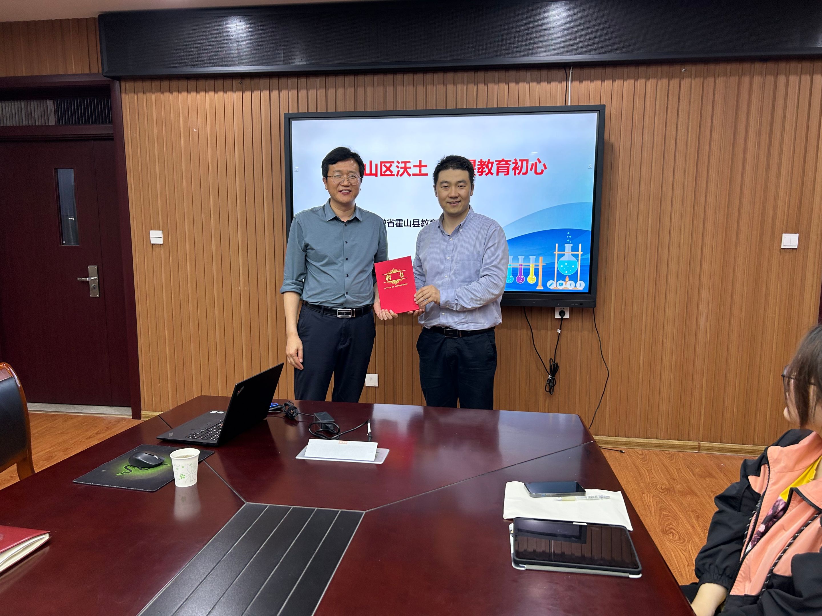 李古州代表学院欢迎陈兆先老师来院指导,并代表学院聘任陈兆先为“优师计划”师范生成长导师。学生成长导师的聘任,寄希望陈老师能结合基层一线工作经验,通过师生面对面、成长研讨课、主题交流等形式引导化学专业“优师计划”师范生厚植家国情怀,强化专业本领和沟通能力,努力成为新时代“四有”好老师。