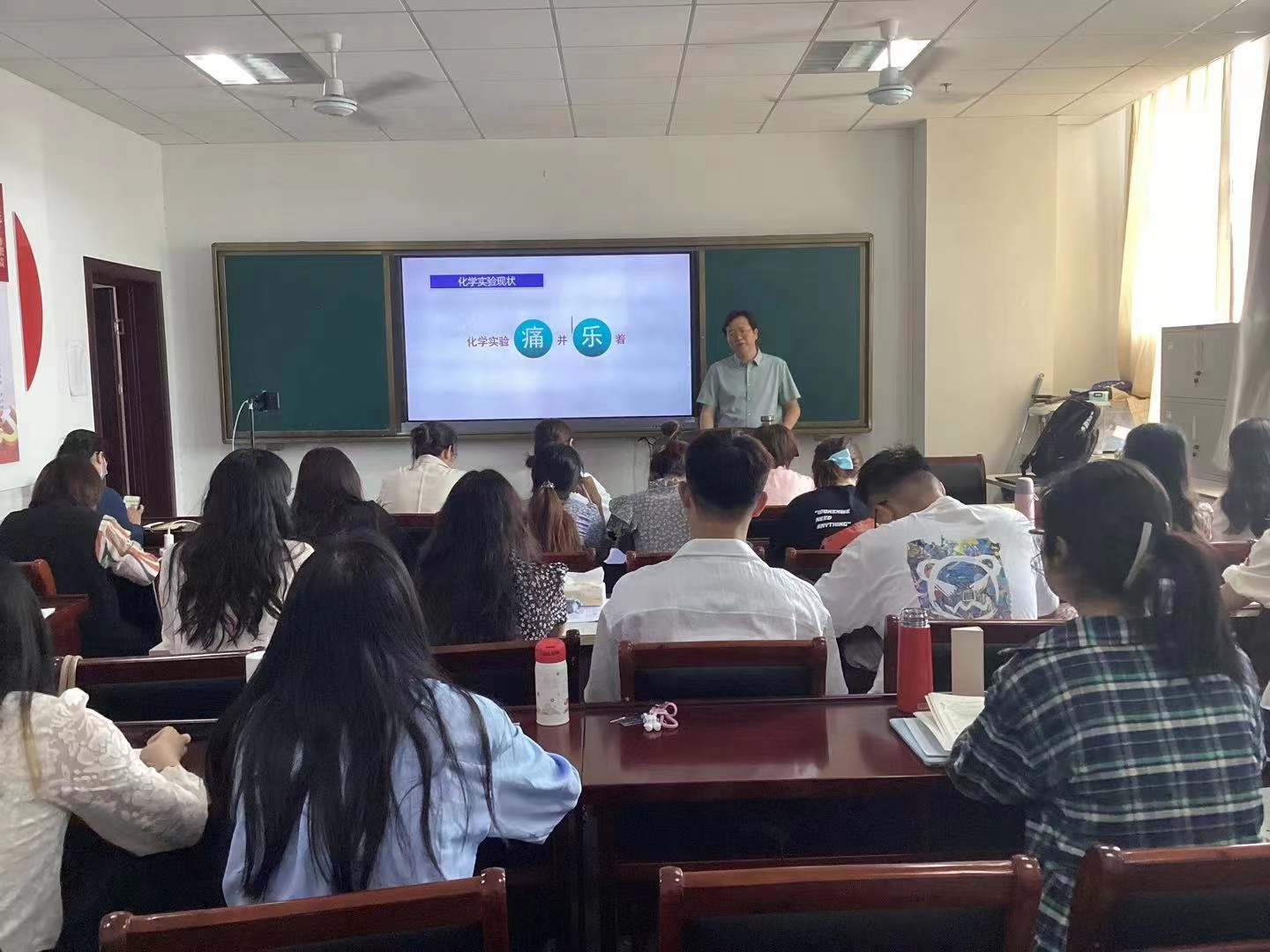 田一鸣)5月18日上午,安徽省特级/正高级教师、霍山县教研室主任、中学化学教研员陈兆先应邀为化学教育研究生作专题报告,本次报告以“基于核心素养的化学实验教学与创新”为主题,线上线下同时展开,报告由孙影教授主持,化学教育专业研究生、教学论专业教师共同参加。