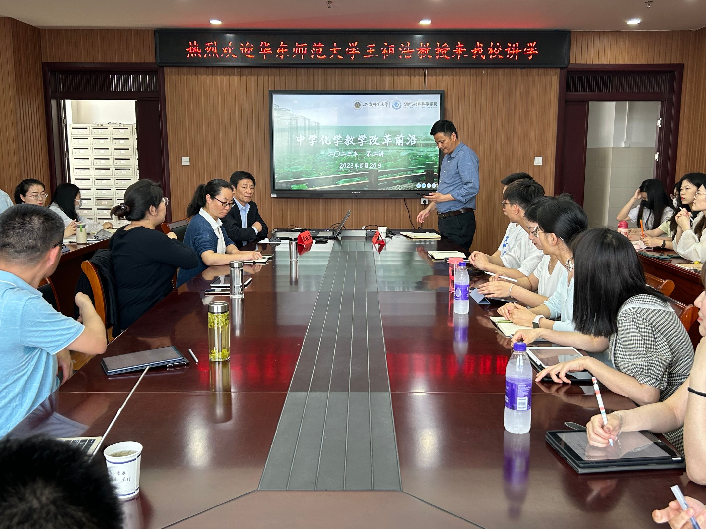田一鸣)5月20日下午,华东师范大学教师教育学院王祖浩教授应邀为化学教育专业研究生作专题报告,报告在花津校区礼勤楼702会议室举行,由色情视频