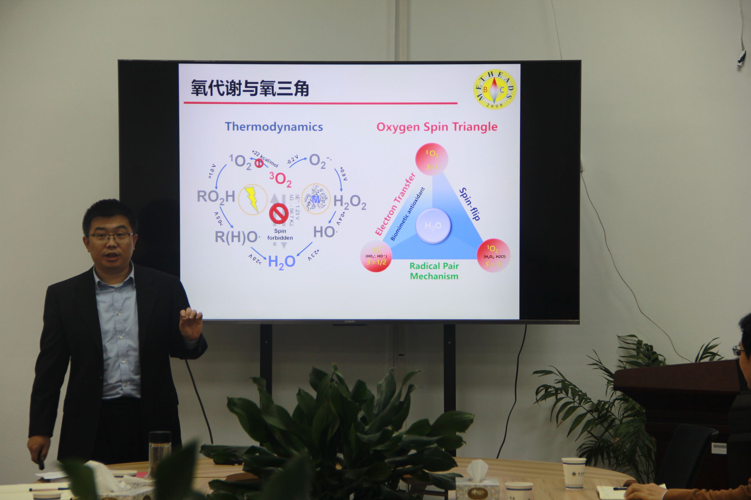 张俊龙教授作了题为“镍(II)分子诊疗药物”的学术报告。张教授讲解了从生命中氧的代谢转化引入金属的重要性,深入浅出地讲述了在金属配合物药物设计中,金属中心的独特性以及重要作用。利用金属的化学反应性为指导原则,张俊龙教授课题组发展了多种抗肿瘤、抗脑卒中、抗血管增生的金属 salen 药物。这为发展金属配合物药物提供了新的设计思路和指导原则。会后,张俊龙教授与与会师生展开了一系列学术讨论,并回答了与会师生提出的问题.