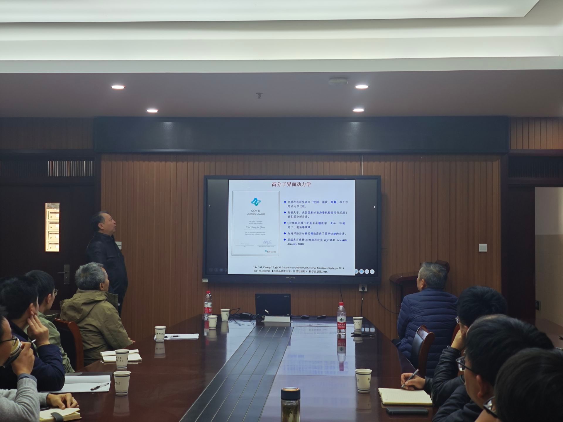 张广照教授作了题为“从杂化共聚反应到高性能海洋防污材料”的学术报告,张教授首先简要介绍了海洋污损的成因以及污损对海洋工业和海事活动等的影响。指出海洋防污是一个与能源、环境、国防等国家重大需求相关的课题,也是一个国际性的难题。随后张教授提出了“动态表面防污”的策略,并以此研制了主链降解高分子基防污树脂。特别是,利用其发现的杂化共聚反应,合成了降解聚丙烯酸酯高性能防污树脂,发展了系列具有自主知识产权的防污材料,实现了规模化生产和应用。会后,张广照教授与参会师生展开了一系列学术讨论,并回答了与会师生提出的问题。