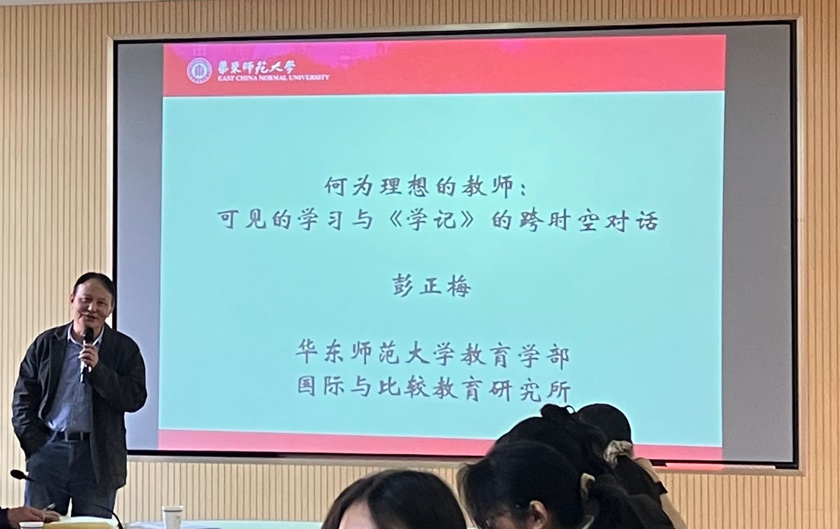 彭正梅老师以《何为理想的教师》为主题开展报告,他首先以布鲁姆的认知等级图提出培养高阶能力是全球教育改革的新趋势。报告从六个方面展开,他从“效应量”的角度探讨了教师对学生学习效果的重要影响,介绍了“卓越教师的十个心智框架”。该框架强调教师在课堂上与学生的互动和对话,认为让错误受到欢迎的教学环境对学生来说至关重要。他还提出了教师应成为“台上的圣哲”还是“身边的向导”这一问题,通过对比“卓越教师的十个心智框架”和《学记》中的教育思想,指出教师应该处在中心时刻参与学生的学习。