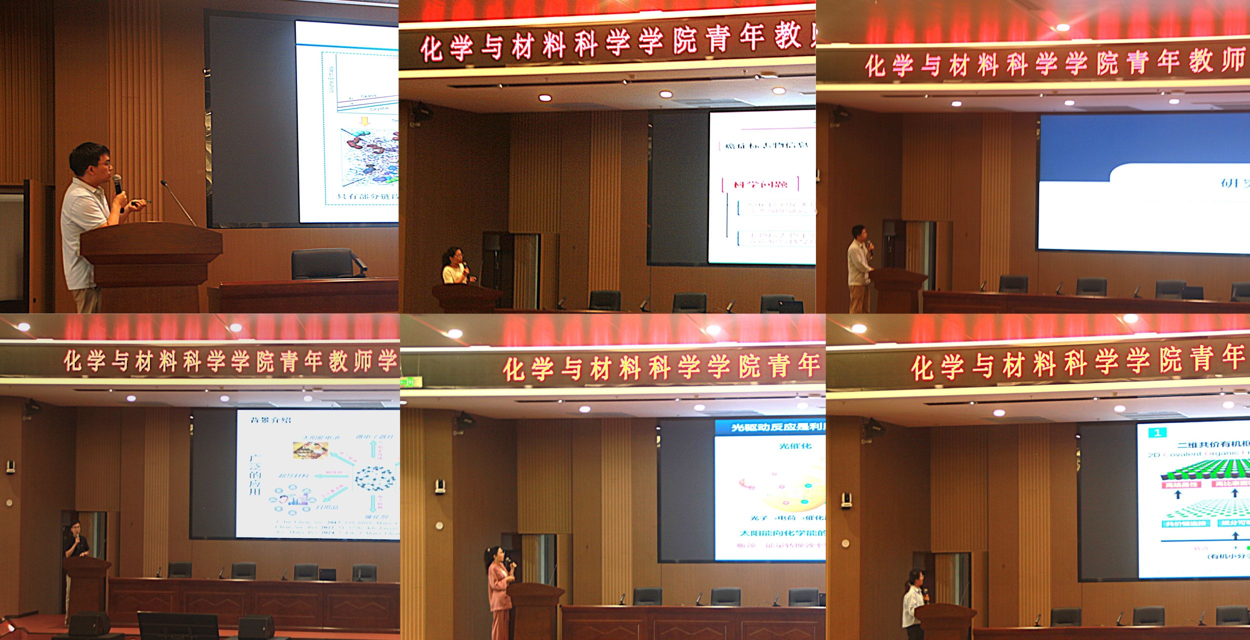 史高鹏、凌平华、严冬、牛闯、孔婷婷、岳艳等六位青年教师分别作了题为“非晶高分子的玻璃化转变及其能量耗散研究”、“电化学与生物传感器的构建及其性能研究”、“有机-无机杂化光学晶体的设计合成及性能研究”、“[60]富勒烯稠合内酯的电化学和热反应研究”、“光驱动碳基分子转化的催化材料设计”和“二维酞菁基共价有机框架材料的电化学应用”的学术报告。本次学术沙龙各位青年教师主要介绍了自己课题组开展的科研工作、研究内容及取得的一些阶段性成果,遇到的一些瓶颈等。
