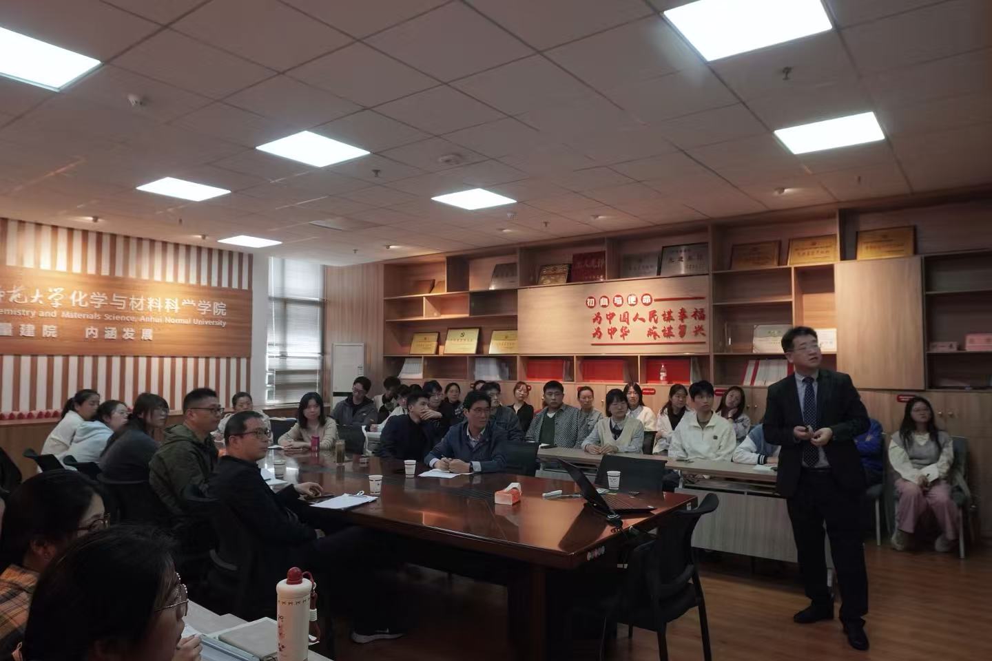 江云宝教授做了题为“拟肽超大环:合成、手性和跨膜输运报告主要内容”的学术报告。江云宝教授系统介绍了拟肽超大环的研究进展:(1)以β-转角结构为自模板,实现无需高稀释条件的高效合成,分离简便且产率高;(2)解析其超分子螺旋的手性传递机制,借助氢键、卤素键等非共价作用,推动螺旋组装并形成均相手性体系,还可通过自发拆分获得纯手性聚集体;(3)该拟肽超大环兼具阴离子受体特性,能自组装成纳米通道,实现葡萄糖等单糖的跨膜输运,同时对个别底物展现出高亲和性,其骨架内的手性通讯特性也为分子识别提供了基础,为生物分子递送、传感等领域提供了新型功能材料体系。会后,江云宝教授与参会师生展开了一系列学术讨论,并回答了与会师生提出的问题。