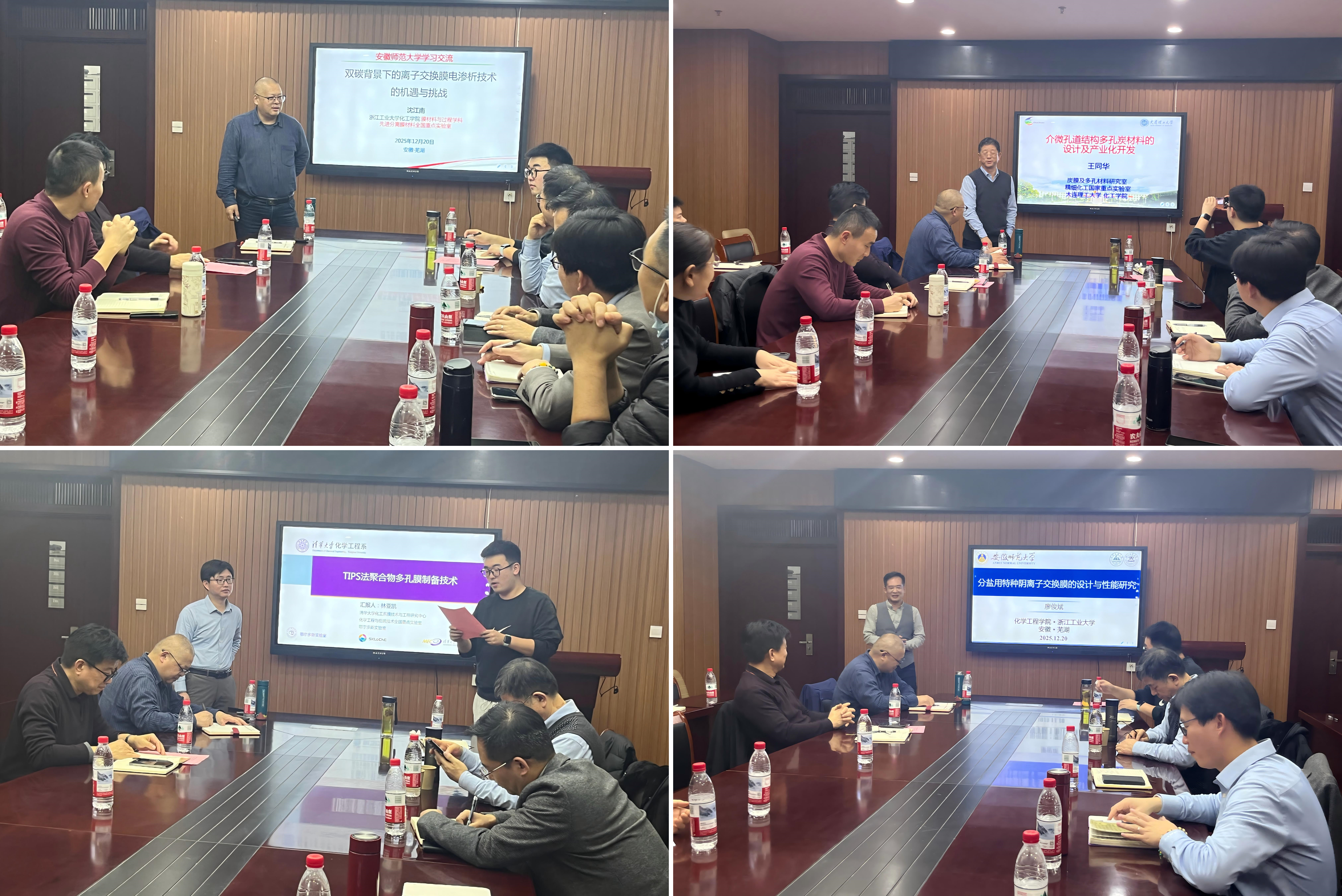四位专家分别以《双碳背景下的离子交换膜电渗析技术:机遇与挑战》《介微梯度孔道结构多孔炭材料的设计与产业化》《TIPS法聚合物多孔膜制备技术》《分盐用特种阴离子交换膜的设计、制备及性能研究》为题,分享了从基础理论、材料创制到产业落地的全链条成果。