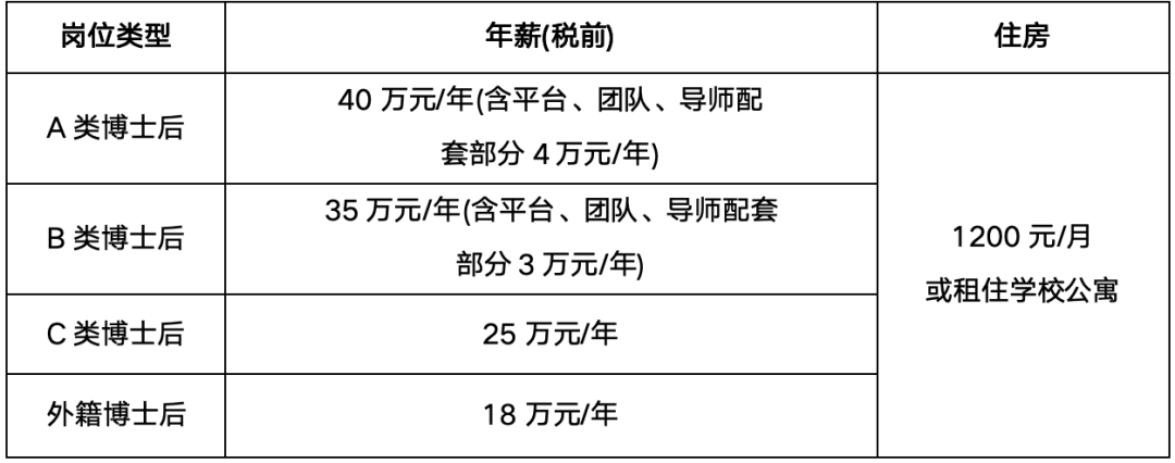 各岗位类型博士后的年薪、住房等按照岗位类型兑现: