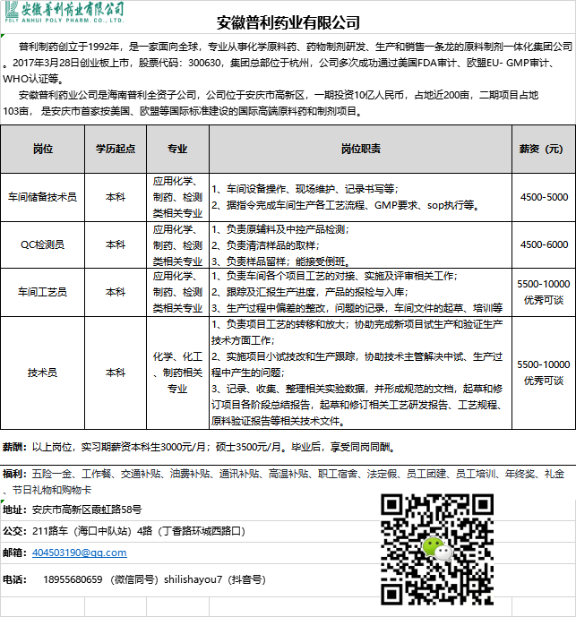 上一篇:前一记录->安徽省庆云医药股份有限公司招聘简章 下一篇:后一记录->安徽科立华化工有限公司招聘简章