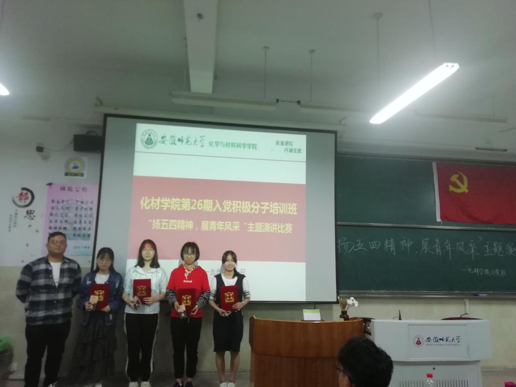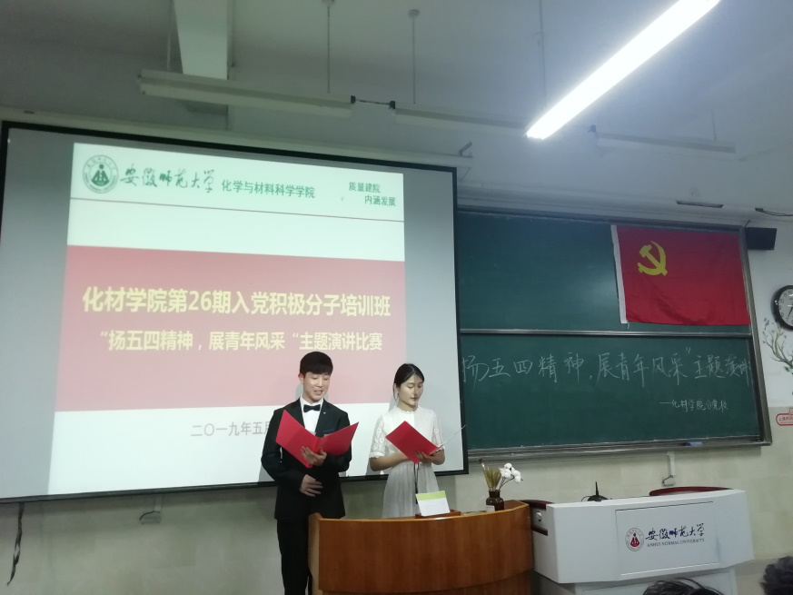 分党校第26期入党积极分子培训班于5月10日晚19:00在行知楼2010308教室开展“扬五四精神,展青春风采”主题演讲比赛,17级、18级各专业辅导员老师应邀担任此次比赛评委。