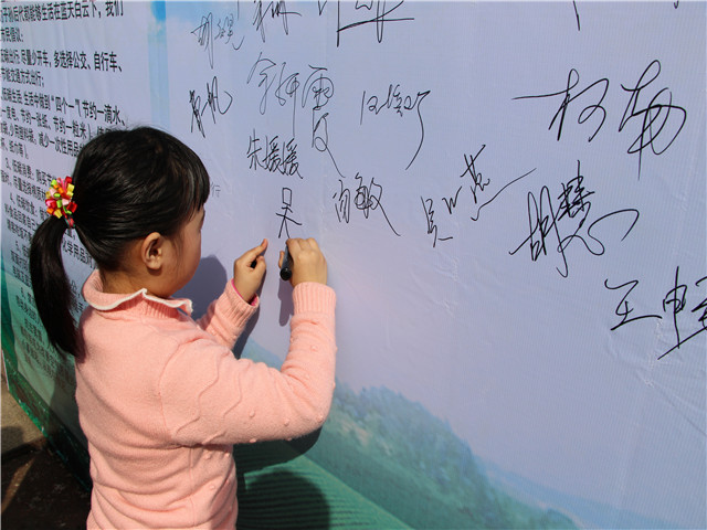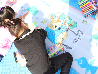 本次宣传活动还携手芜湖市妇女儿童活动中心,邀请活泼可爱的孩子们以“绿色环保”为主题在画纸上绘画出他们心目中的美好世界。长卷上描绘的一幅幅画卷不仅是孩子们对天蓝地绿水清的美好愿望,更是他们心目中的美丽家园。
