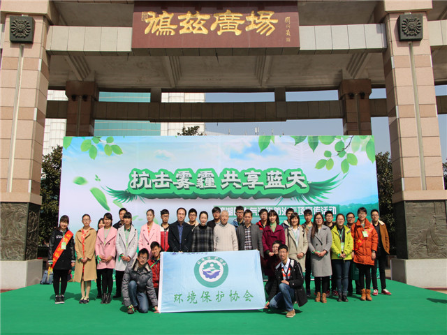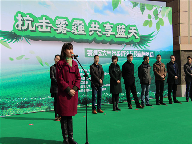 环境保护协会长于小飞作为环保志愿者代表,以化学专业学生身份,从专业视角分析大气污染现状,并向市民发出了“低碳出行、低碳生活、低碳消费、低碳饮食、低碳办公、禁放烟花”六点抗击雾霾倡议。
