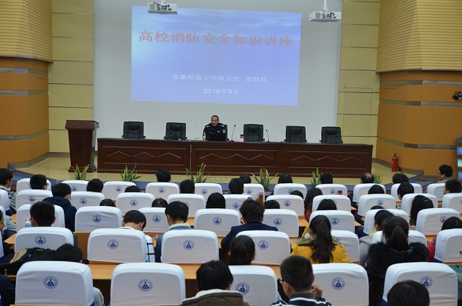 2016年春季消防安全专题讲座暨消防安全实战演练活动于科技小礼堂顺利举行。校保卫处崔世兵副处长应邀担任主讲嘉宾,院长高峰、实验室老师、学生寝室长和学生干部代表400余人全程参加了活动。