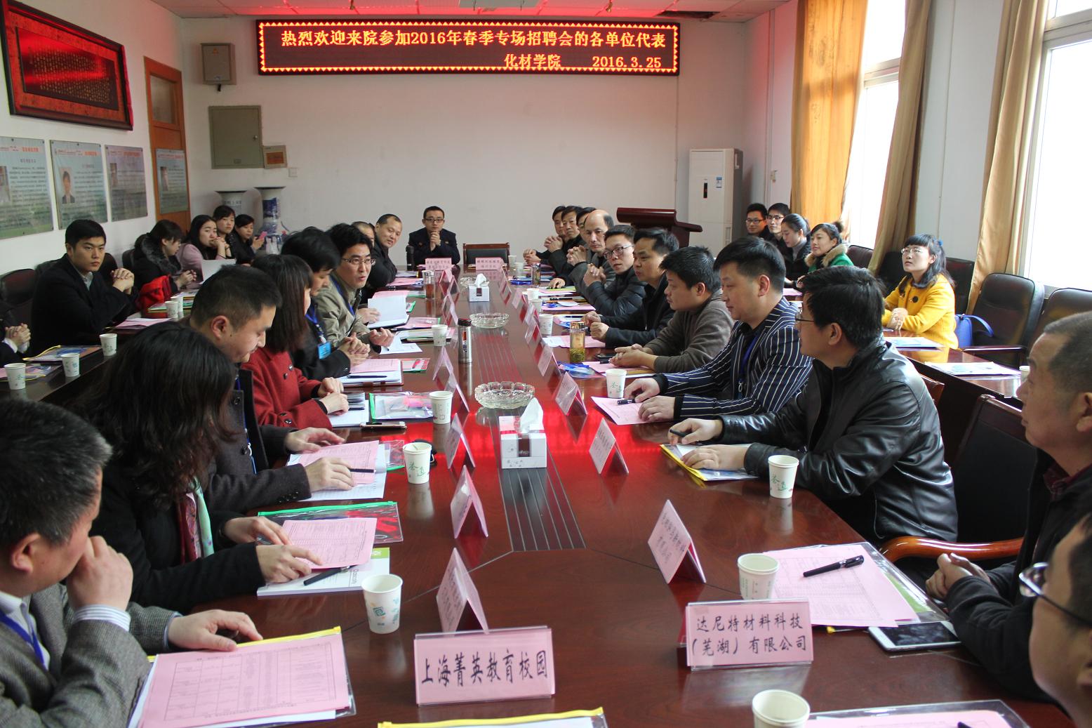 2016年春季专场招聘会于赭山校区就业大厅成功举办。学院共邀请达尼特材料科技科技有限公司、芜湖飞驰零部件技术有限公司、安徽中日维丰新技术研究院有限公司等16家用人单位来学院参加本次专场招聘会。