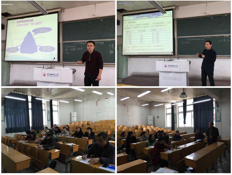 4月1日下午在2033教室,化学系为青年教师参加学院比赛组织了一次赛前的展示和指导,化学系全体教师进行了全程观摩。陈华茂和张四方两位青年教师将板书和PPT相结合,分别围绕“表面能和表面张力”和“分析和挖掘教材的价值”两个知识点,向大家进行了精彩的微课展示。盛恩宏和吴华强两位专家对青年教师的微课表现,从思路的设计、课程的导入、PPT的制作、语言的表达、知识点的前后呼应等多角度进行了详细而又深入的交流和指导;孙影、程瑶琴等多位老师从专业的角度对微课进行了评析。