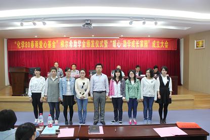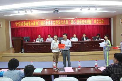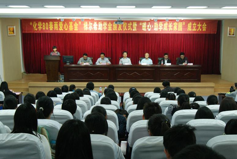 在赭山校区图书馆报告厅隆重举办"化学80春雨爱心基金"梯尔希助学金颁发仪式暨“暖心·助学成长家园”成立大会。出席大会的有梯尔希(南京)药物研发有限公司副总经理芮彬云、财务经理徐好,校教育基金会负责人傅乐义、方百盈,色情视频