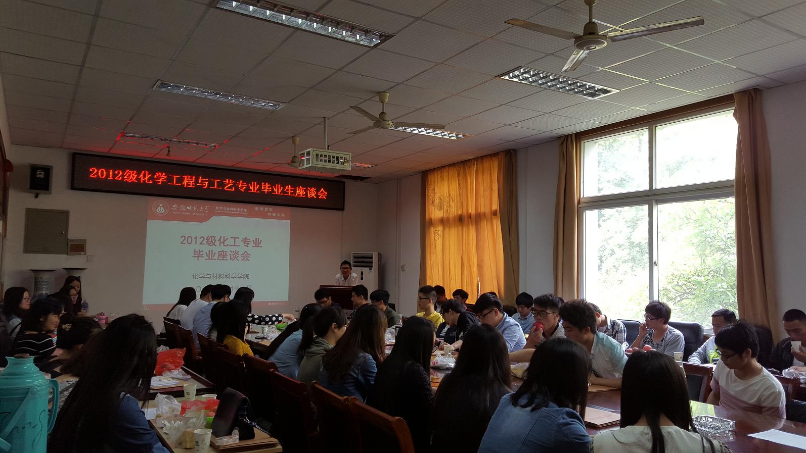5月17日,在2016届毕业生即将分别之际,2012级化学工程与工艺专业学生自发组织,在院大会议室召开了化工专业毕业主题班会。