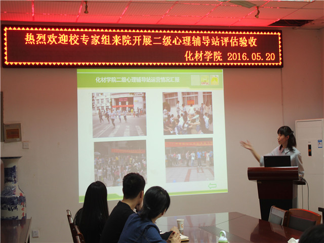 ,指导学院心理健康教育工作并评估院二级心理辅导站建设和试运行情况。院党委书记汪俊武、副书记余妍霞、院二级心理辅导站全体成员参加了评估活动。