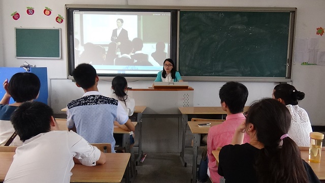 采访结束后,团队队员张苗向老师展示了自己精心准备的说课,每个人都认真聆听,全神贯注。课程结束后,郑老师对本次课进行了点评。她强调,课堂上一定要以学生为中心,多与学生互动,而且要注意教师自身的表情、手势的变化,尽可能抓住学生的注意力,让课堂气氛活跃起来。同时,她还建议同学们要学会板书设计,尽量有创新,可以吸引学生。最后,郑老师给队员详细讲解了说课这种教学方式。她认为,一节课最重要的就是设计理念,要让绝大部分的学生能够明白这节课的学习内容是什么。其次就是要学会引导学生,不要把知识直接交给学生,在引导下让学生自己得到结果,这样课堂效率会高一点。而且,她建议大家在以后的教学过程中,要多多向优秀的老师学习,慢慢改进自己的不足,走向成功。活动结束之后,团队队员与郑楠老师合影留念,记录下这难忘的经历。