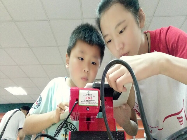 首先,在工作人员的培训和指导下,队员们提前进入教室做好一切准备活动。下午两点半整,小朋友们在父母的陪同下过来体验自己动手的乐趣。孩子们最后在引导下分成了两组,一组做切割拼图,一组做乐高拼砌。
