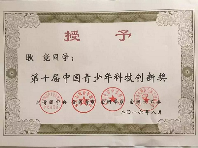2013级学子耿竞作为安徽省唯一的本科生获奖者荣获第十届中国青少年科技创新奖,是色情视频