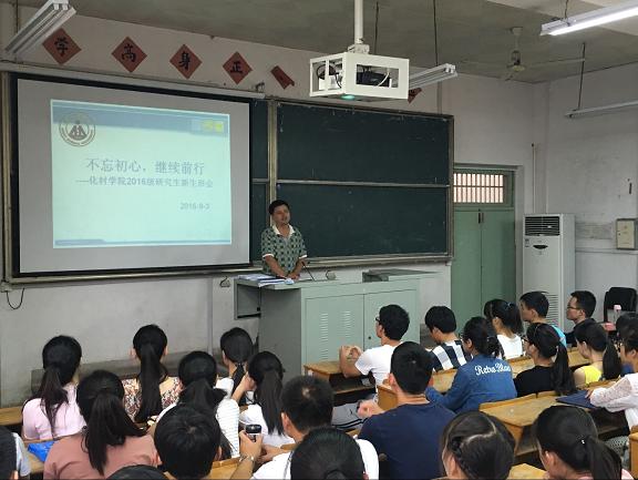 下午4时30分,全体2016级硕士研究生在生化楼2024召开了主题为:“不忘初心,继续前行”的主题班会,会上科研副院长周双六发表了讲话,介绍了我院的发展现状、各专业的基本概况,同时对2016级硕士研究生提出了殷切希望。研究生秘书赵全胜对2016级新生的到来表示热烈的欢迎,在简要回顾我院总体概况、学生组织等情况后,对接下来新生入学后的工作展开了布置。