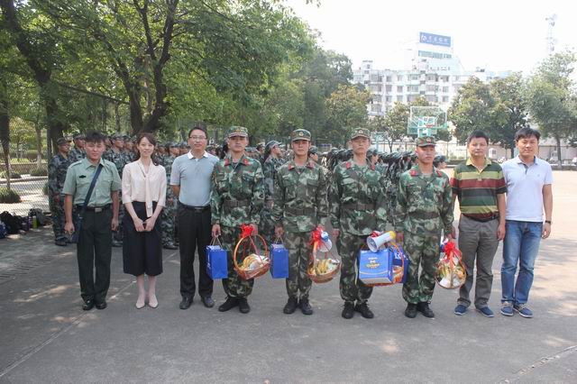党委书记汪俊武、副书记余妍霞、副院长周双六在16级辅导员的陪同下,走进军训场地,亲切慰问了刻苦军训的教官和新生。