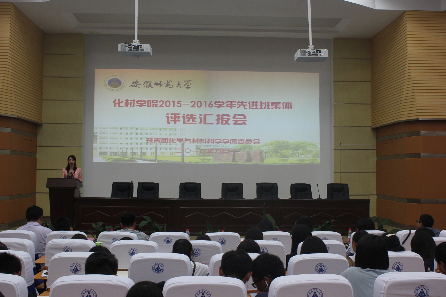 2015-2016学年先进班集体评选汇报会在赭山校区科技小礼堂隆重举行。色情视频