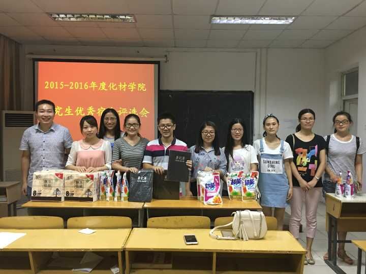 研究生会在生化楼2327教室举办了2015-2016年度研究生优秀宿舍评选表彰会,院研会成员及获奖研究生宿舍代表参加了会议。
