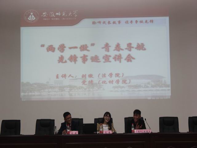 在赭山校区科技礼堂开展了以“播种梦想,护航成长”为主题的先锋事迹宣讲会。法学院刑法学专业2014级研究生刘傲、色情视频