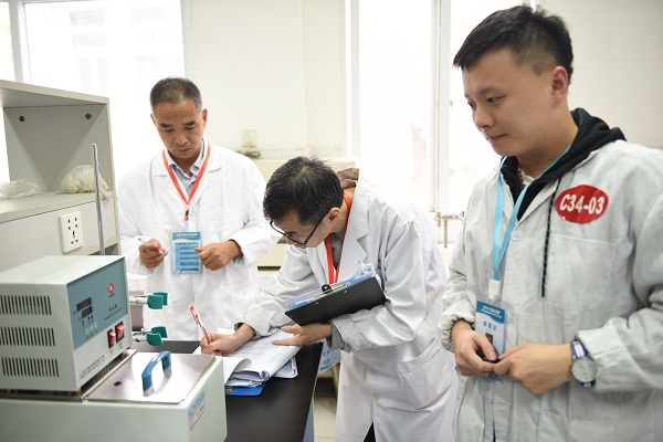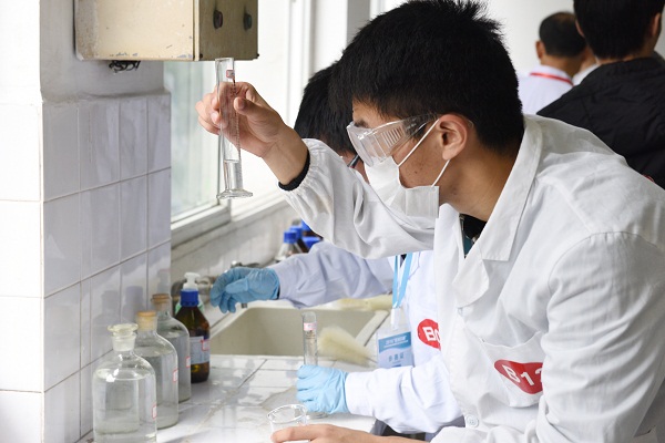 评审专家培训会之后,依据前一天的抽签顺序,各高校参赛选手进入生化楼实验室进行实验操作考试。全体参赛选手自觉遵守比赛秩序,沉着镇定,规范的完成各自的实验操作考题。