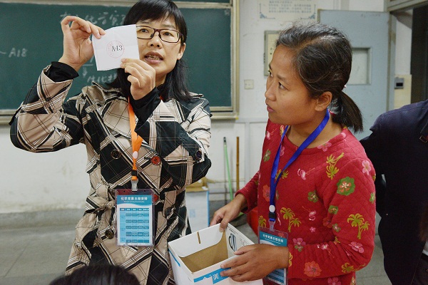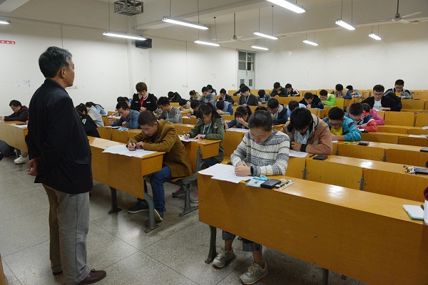 赭山校区田家炳教学楼进行实验理论笔试,与此同时,各高校带队老师进行实验操作抽签。