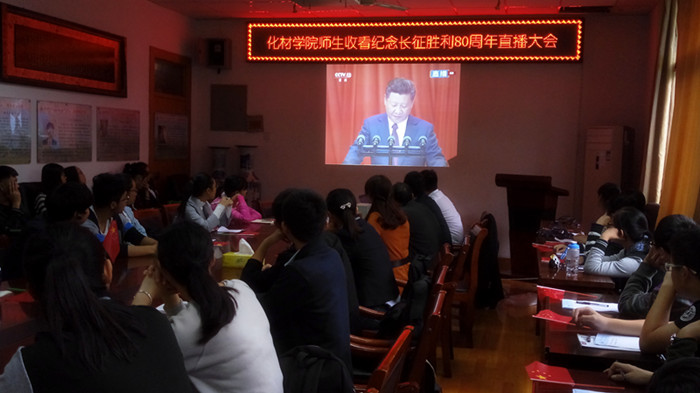 在院会议室组织师生共同收看了纪念红军长征胜利80周年直播大会。院党委副书记余妍霞、党委秘书汪丰云、部分辅导员老师和学生代表共同收看了大会直播。