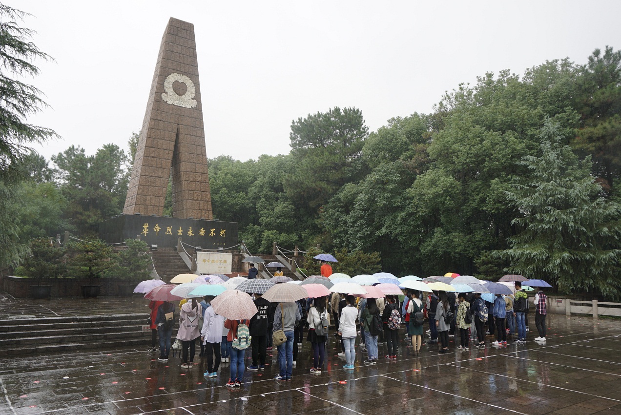 上午9时,参加本次实践活动的全体成员在生化楼前集合后,在班长汪洋的组织下有序搭乘公交车抵达烈士陵园。实践当天下着淅沥的阵雨,待雨势渐小后,学员们开始了此次实践活动。一行人撑伞徒步爬上数百级台阶,来到了烈士纪念塔前。副班长叶方和学员陈浩文一起为革命烈士们敬献鲜花以示缅怀。随后,全体成员默哀三分钟。活动结束时,雨势仍然持续,因此一行人取消了前往芜湖市博物馆的参观学习计划,有秩序的离开了园区。