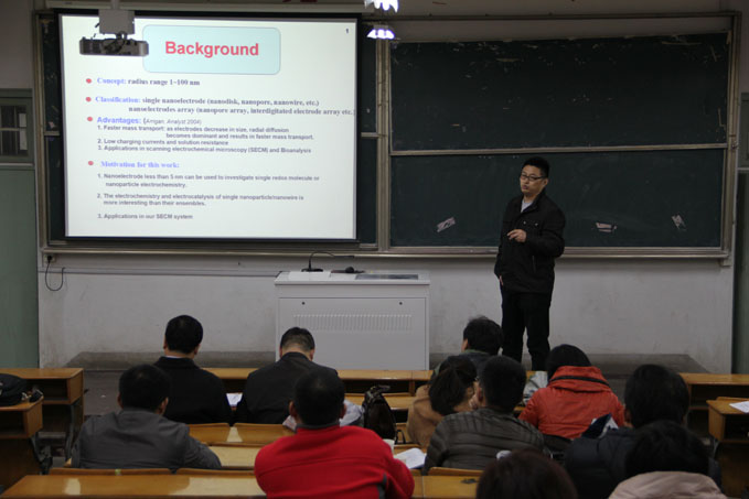 国家自然科学基金在研项目第二轮进展汇报会在赭山校区生化楼2023教室举行。部分在研国家自然科学基金项目主持人、准备申报2017年国家自然科学基金和具有博士学位以上的老师参加了会议,会议由副院长周双六教授主持。