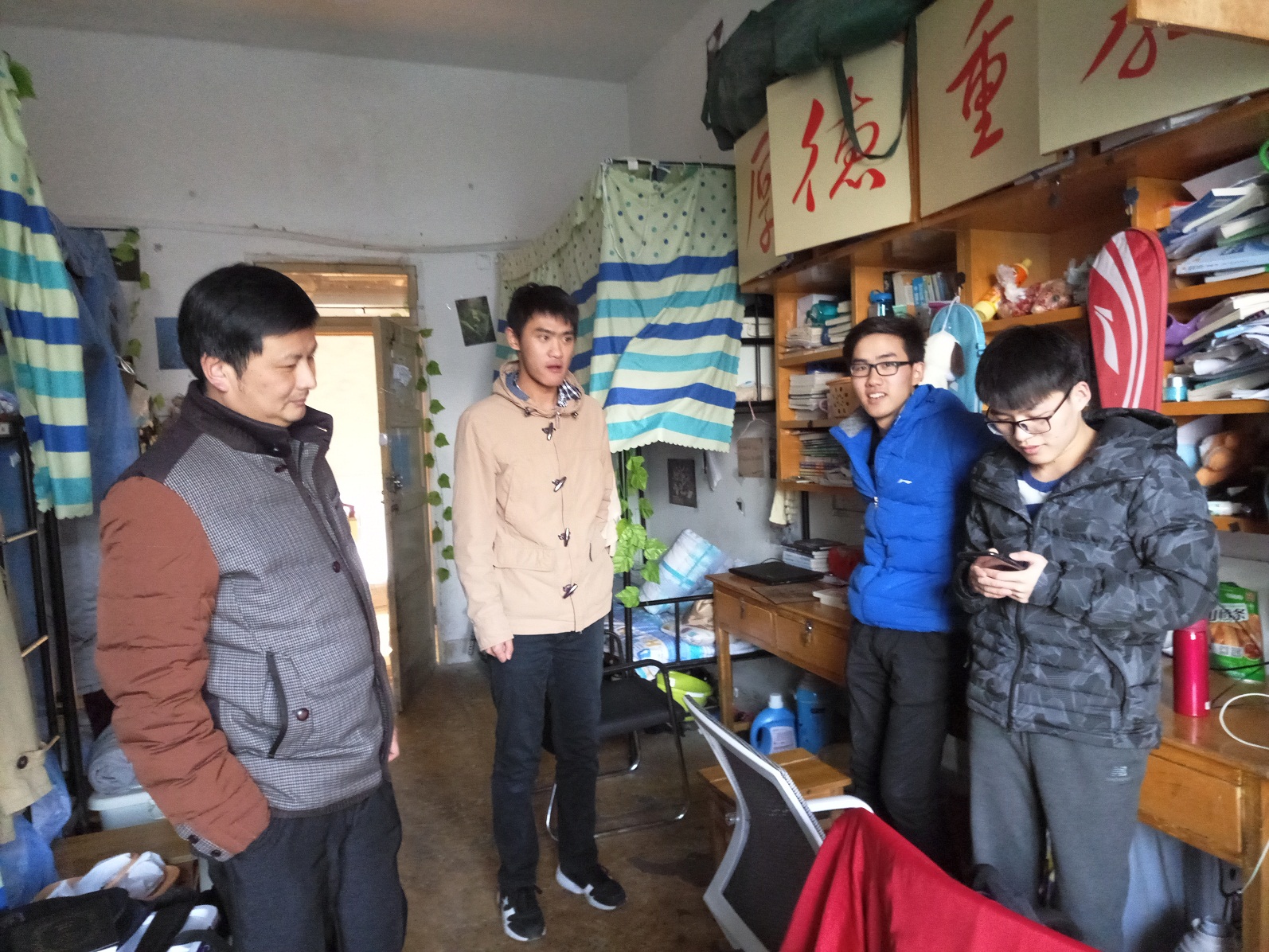 在走访过程中,领导老师亲切询问学生假期的学习和生活状况。书记汪俊武、副院长张小俊在走访新生寝室时,重点询问了同学们生活中遇到的困难,新学期的学习规划情况,勉励一年级同学要树立明确的目标、勤奋学习、积极进取。院长高峰、副书记余妍霞在走访毕业班宿舍时,分别对现在正在积极求职的毕业班学生表示支持和鼓励,希望他们要树立“先就业再择业”的就业观念,求职过程中要保持信息畅通,积极主动认真准备。副院长周双六、刘桂云在走访二三年级的学生寝室时,重点关心了学生的学业发展,认真询问了同学们的近期目标和规划,鼓励同学们要学好专业课,夯实基础,为考研和就业做好充分的准备。学院领导和辅导员老师除了了解学生的生活、学习情况,还重点排查了宿舍的安全隐患。新学期伊始,大部分同学精神面貌良好,对于少数在卫生和安全方面存在问题的寝室,也现场明确提出整改意见。