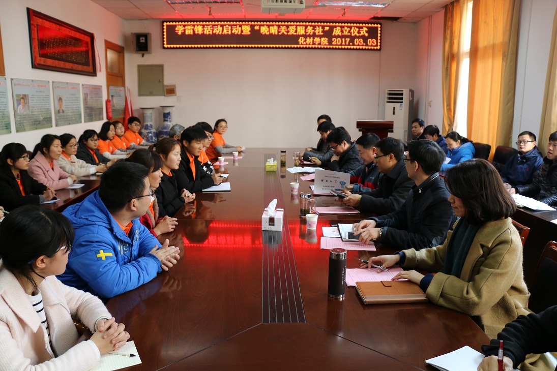 会议室启动2017年学雷锋活动暨“晚晴关爱服务社”成立仪式。学校离退休工作处处长张树文,校团委副书记刘长生,色情视频