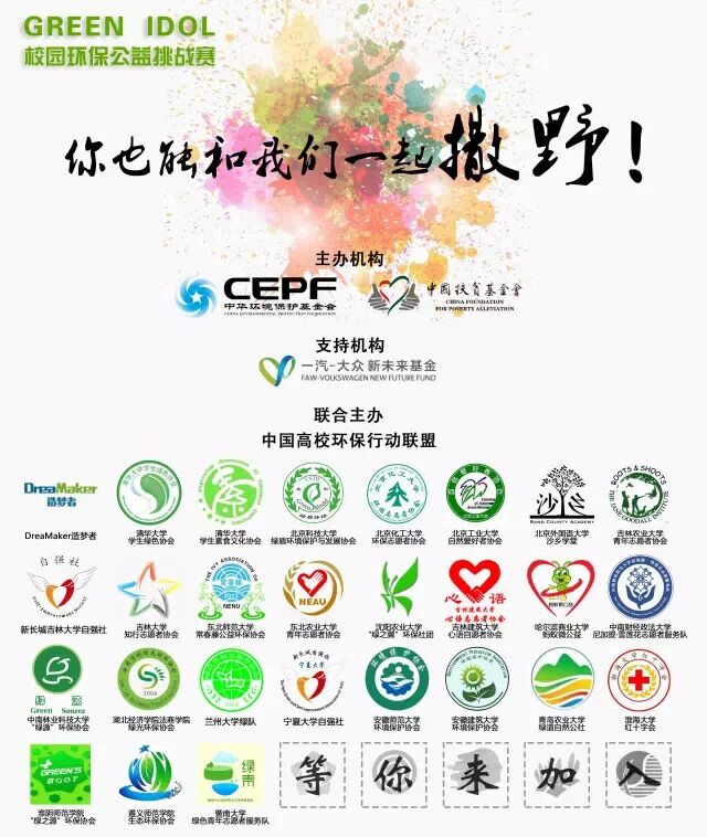 此项目由一汽大众新未来基金于2017年3月发起,由中国环境保护部作为指导单位,中华环保基金会和中国扶贫基金会作为主办单位,联合国环境规划署和清华大学环境学院作为支持单位,面向全国高校招募少量有能力、有影响力的公益社团,进一步加强入选社团的资源传播和区域性领导能力。